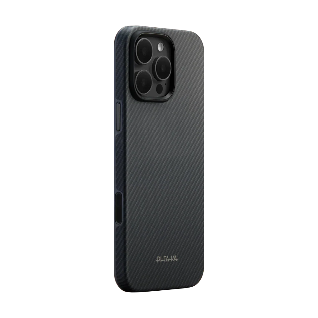 PITAKA Summa Case Black/Grey — идеальный выбор для тех, кто ищет тонкий, элегантный и надёжный чехол для iPhone 16 Pro Max.